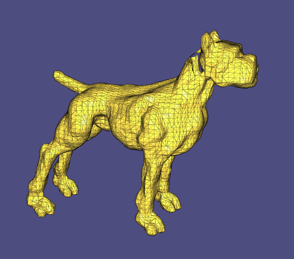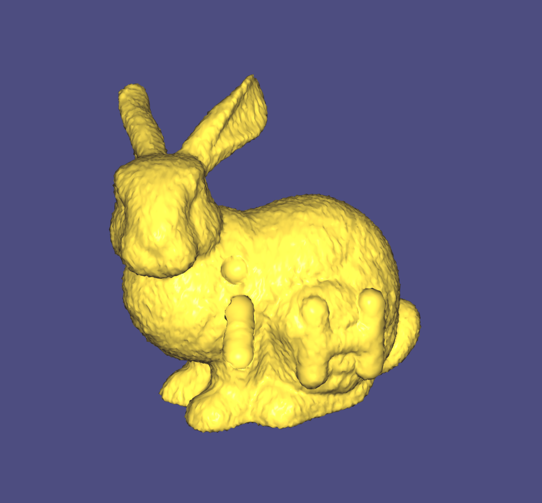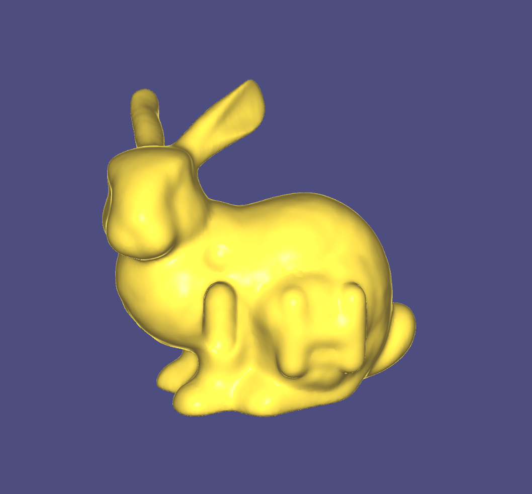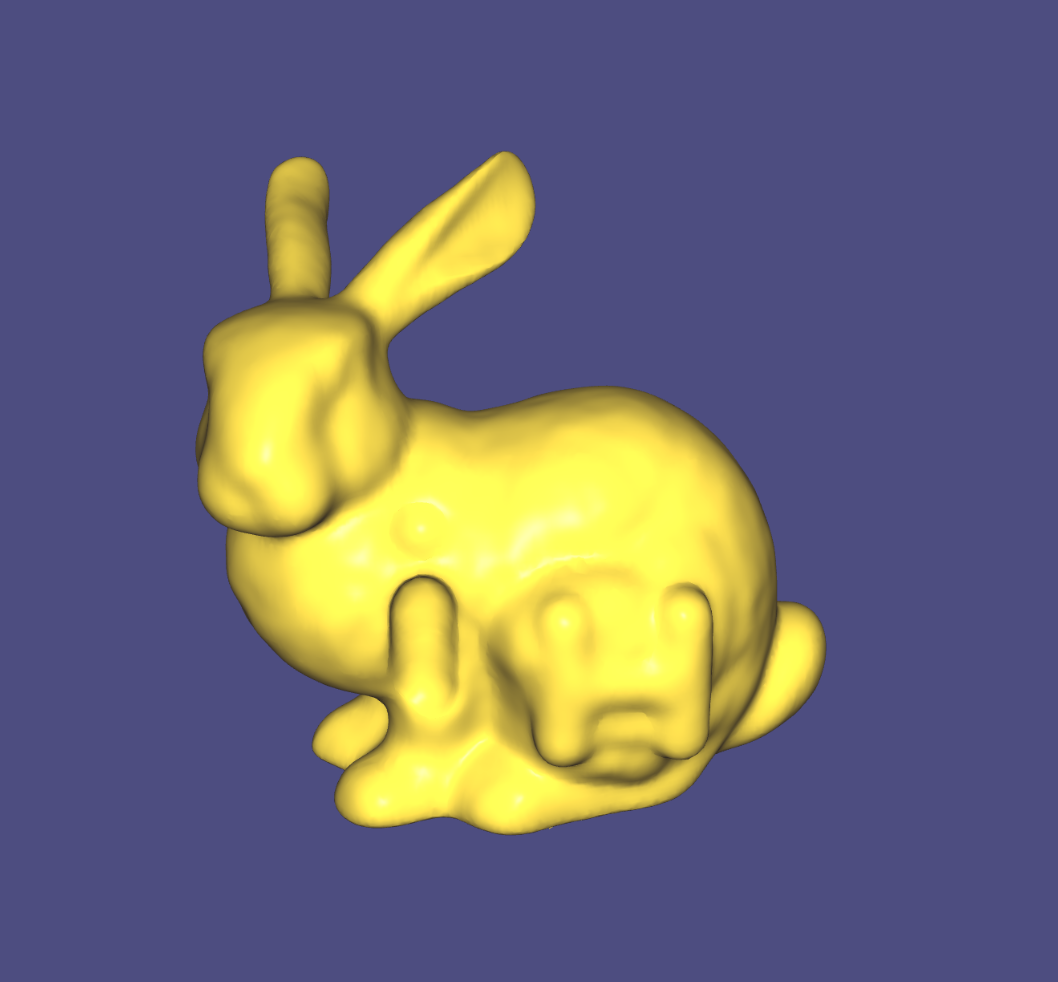 Implicit Laplacian Smoothing. It needs very few iterations to produce a reasonable result. The implicit method is stable with a relatively large step size.