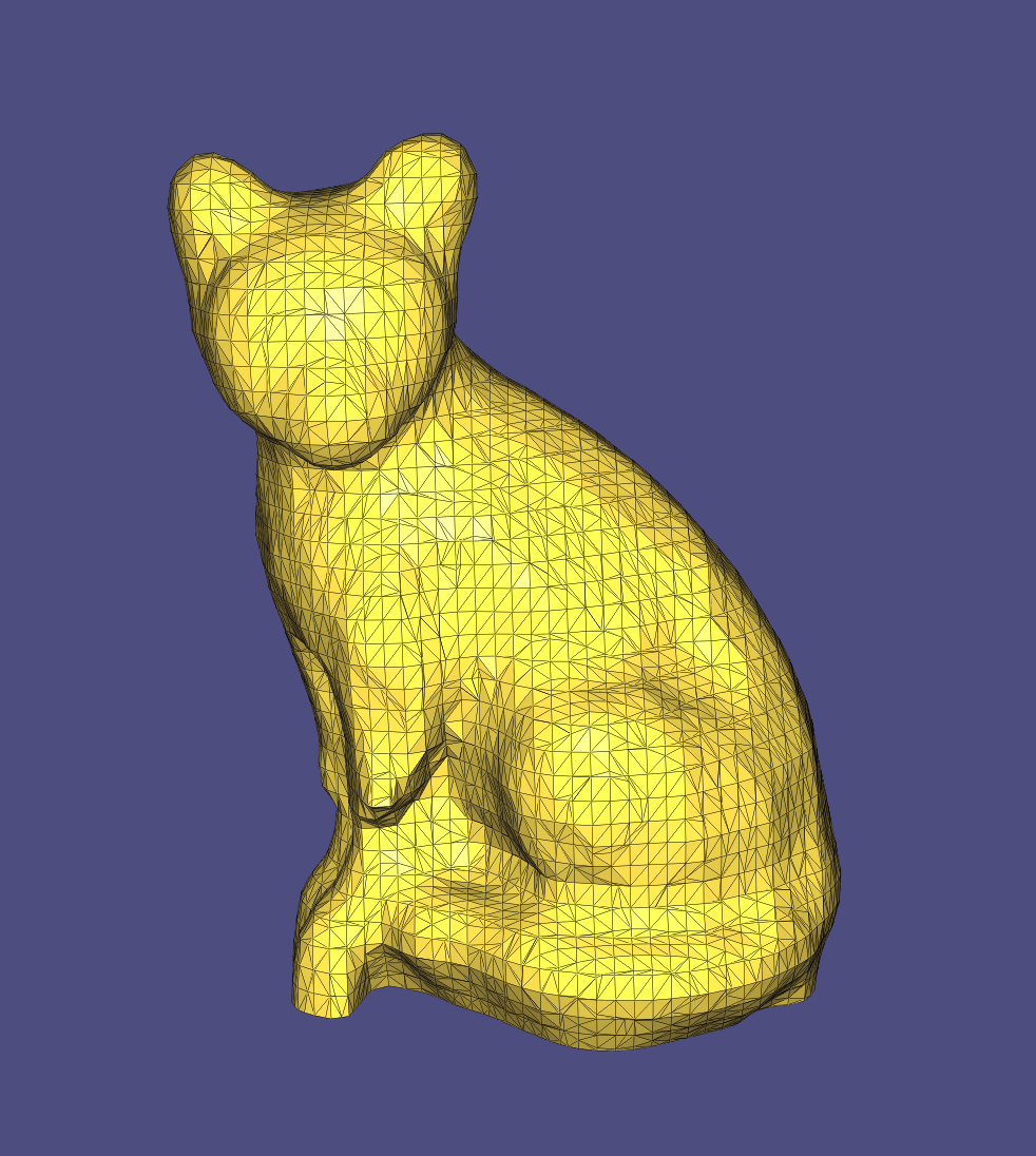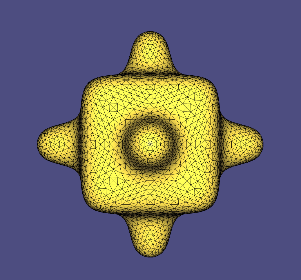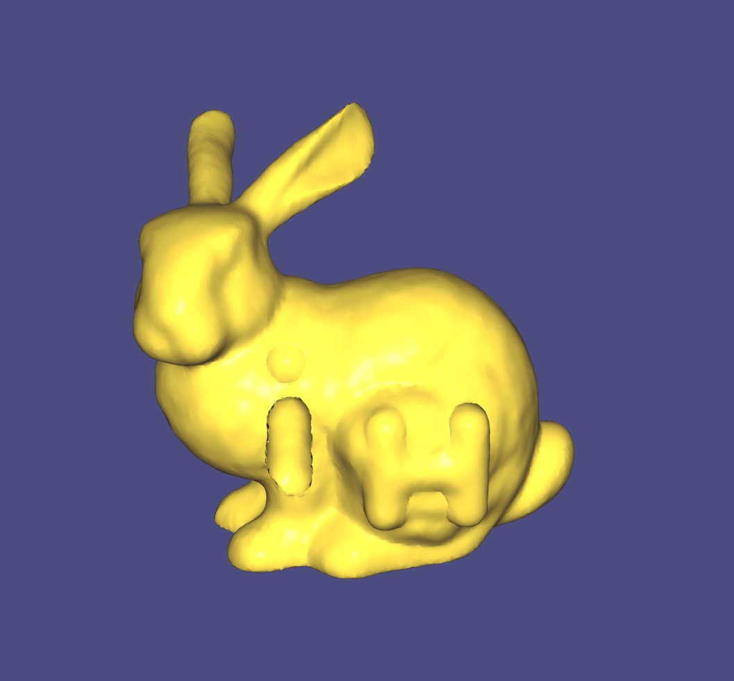 Implicit Laplacian Smoothing. It needs very few iterations to produce a reasonable result. The implicit method is stable with a relatively large step size.
