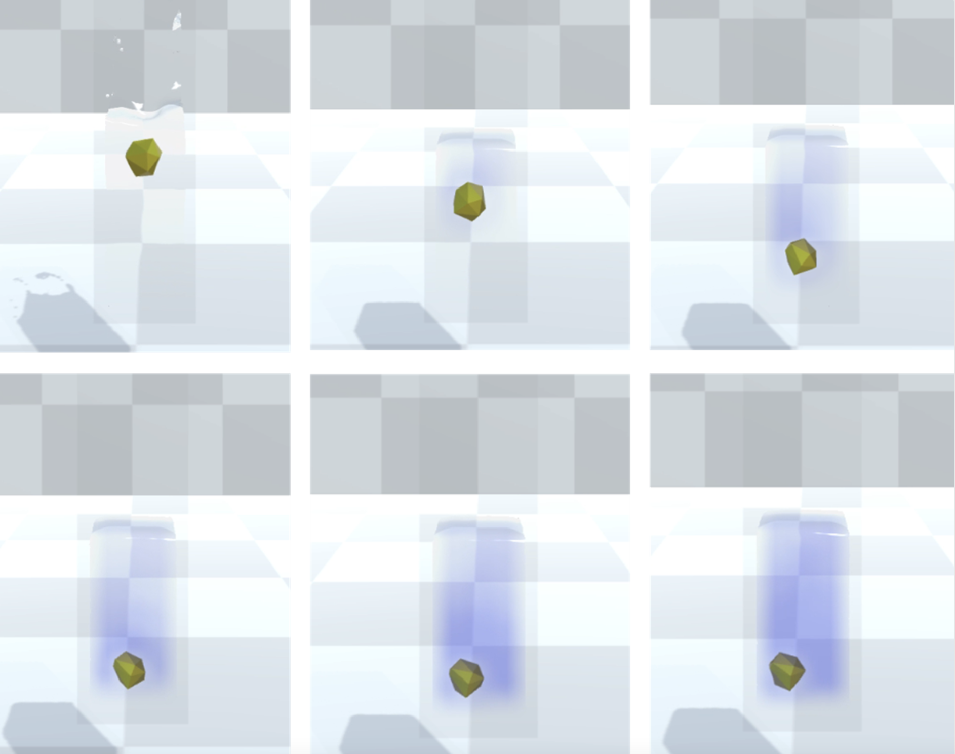I was in charge of the rendering. The fluids are rendered using Screen Space Fluids Rendering. The fluid rendering is accelerated with Compute Shaders. Integrated anisotropic kernels for better surface reconstruction.